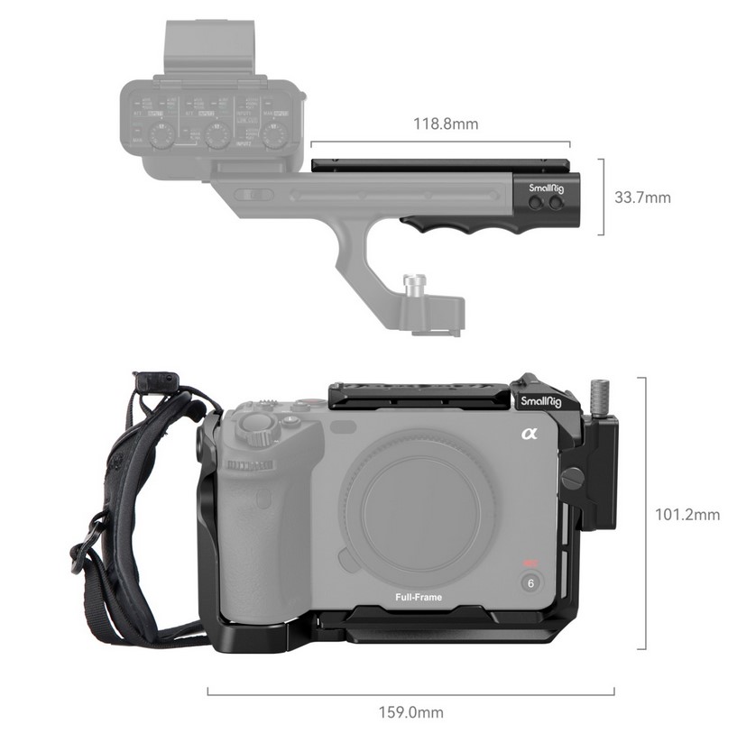 1. Zestaw klatki ręcznej do Sony FX30 / FX3, z paskiem na rękę ułatwiającym fotografowanie.
