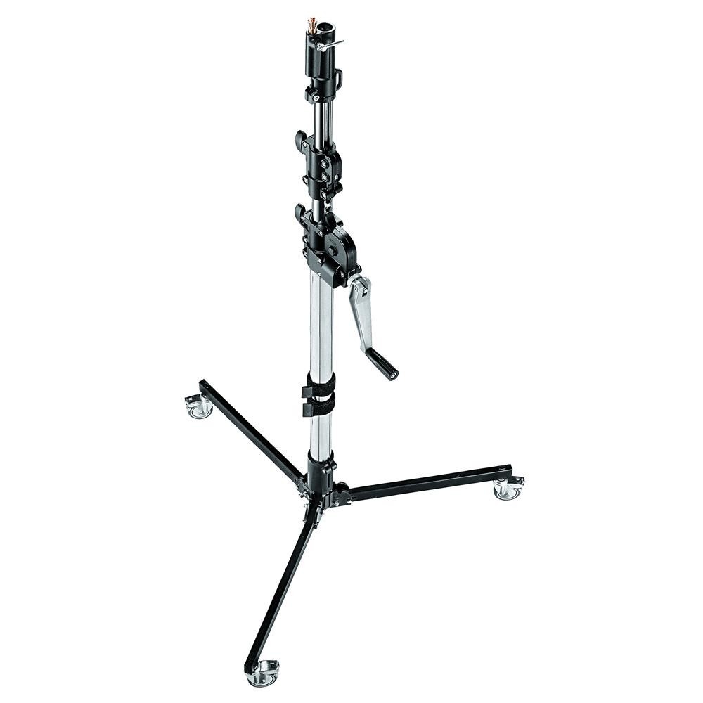 Statyw z wysuwaną kolumną na korbkę, stalowy, 3 sekcje, na kółkach z hamulcem